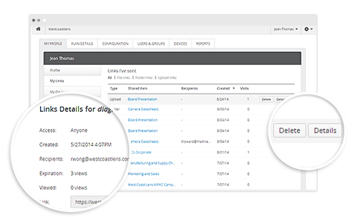 My Links Report: This new report that’s available to all Egnyte accounts shows the links that each user has created. Users can view their reports, filter by link type (file, folder, upload), and delete links, as well as modify the expiry date.