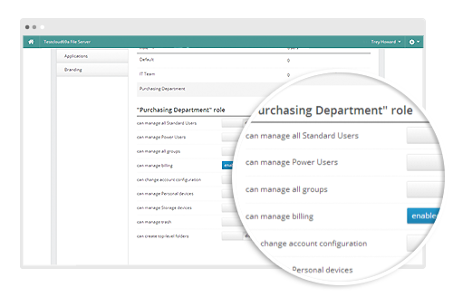 - Role-Based Administration: Admins can now create custom roles for Power Users, which gives them selective admin capabilities, such as the ability to manage plan details or manage users. For example, an Admin can create a Billing Power User who can access the plan details page, add or remove features, update billing information, and retrieve past invoices, but he/she won’t have full access over all files like an administrator does.