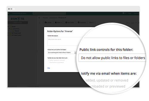 - Password Protection for Folder Links: To add an additional layer of security to sharing folders stored in Egnyte, this new control requires that a recipient of the link provides a password to access the folder and its contents.