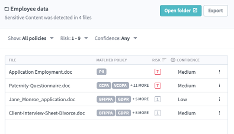 More importantly, Egnyte’s AI uses context information to decide whether a string of digits is a personal identifier or just a partial number. Once the information has been located, Egnyte flags potentially sensitive content in your dashboard, and you can even put in guardrails to limit information sharing outside your organization.