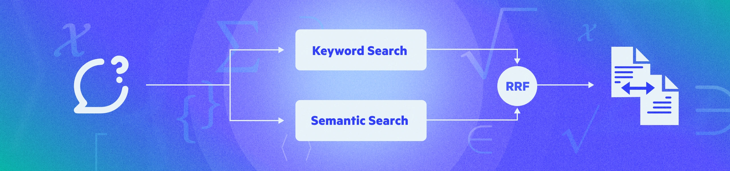 Since keyword search results are ranked using the BM25 function, and semantic search results are scored using dot product, we needed a way to combine these results into a single list and produce a final rank for each result.