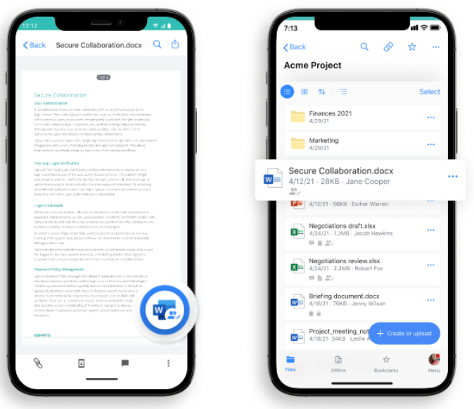 Project leaders can also collaborate by co-editing a contract directly with Microsoft 365 applications. To get started, they configure the Microsoft Office integration with Egnyte so access can be shared with external users. This process can also enable co-editing of Microsoft Office on Egnyte mobile devices.