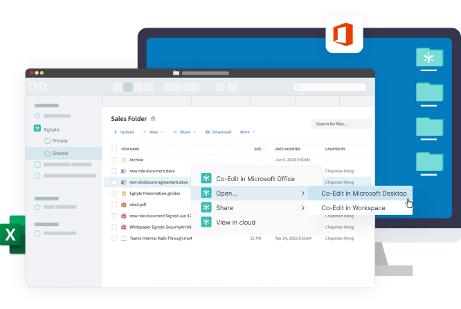 Egnyte and Microsoft partner to provide a powerful integration that enables a seamless user experience across browsers and devices. This collaboration provides seamless workflows for opening, editing, and saving Microsoft Office files in Egnyte’s Web UI, mobile apps, and desktop clients.