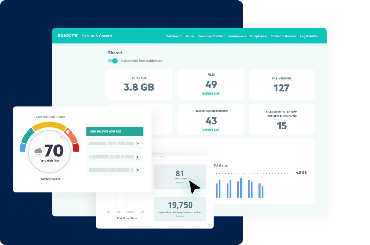 - Gain real-time insights into user behavior and document access patterns with a dashboard and reports