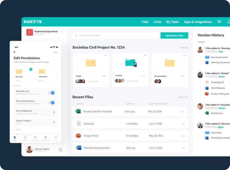 Egnyte integrates seamlessly with your tools, making it easy to manage, collaborate on, and access project data when you need it most.