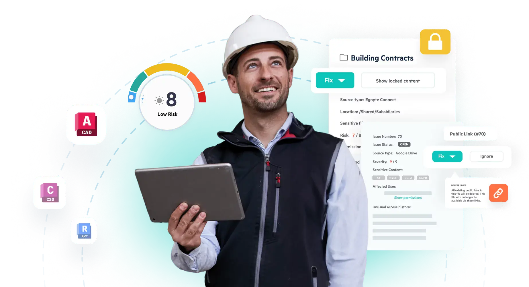 Egnyte enables document sharing and secures data across your dispersed engineering teams. Our AI-driven insights and industry-specific integrations empower engineers to accelerate projects, make informed decisions, and ensure regulatory compliance.