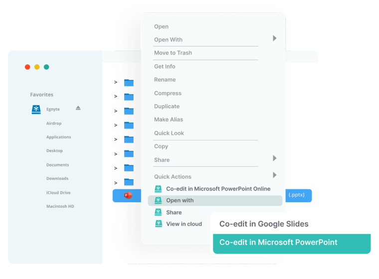 Legally binding electronic signatures directly in Egnyte workflow.