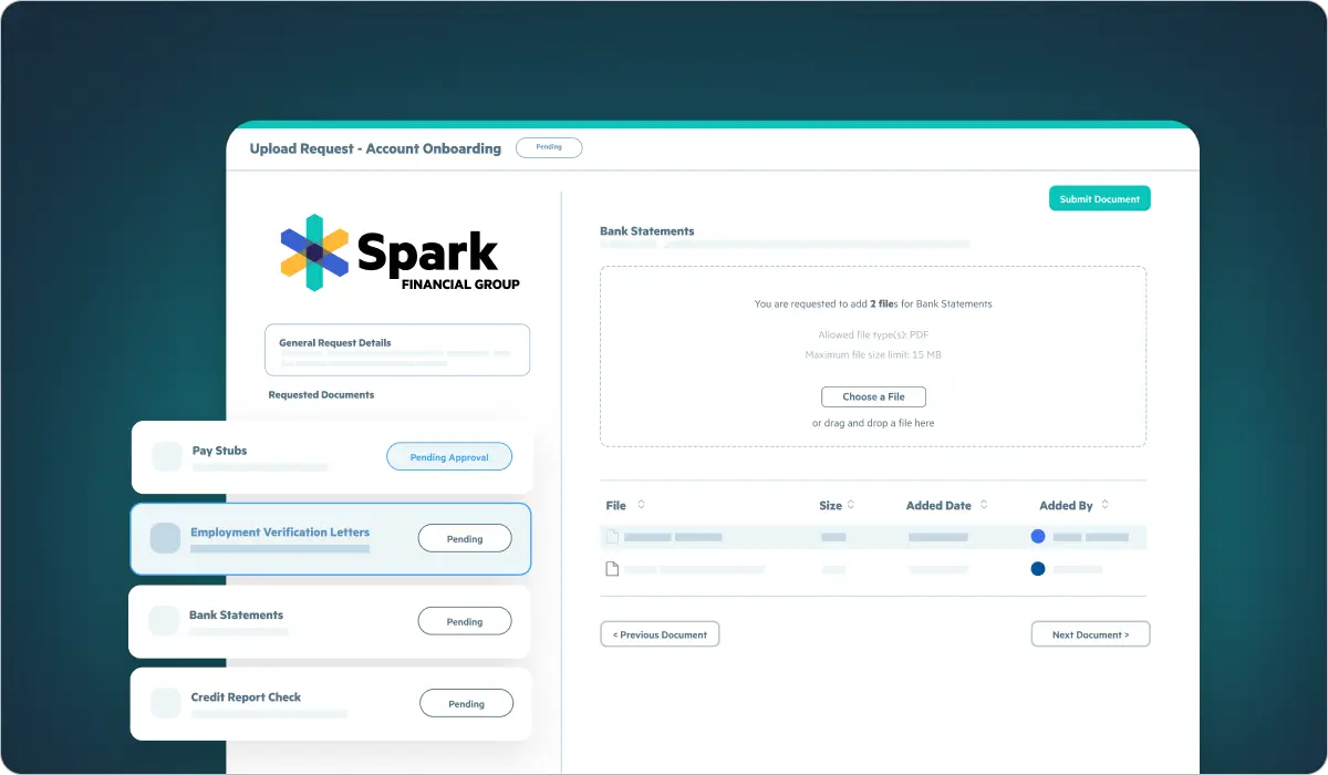Simplify and secure document requests, collection, and sharing for client onboarding, new account opening, and more.