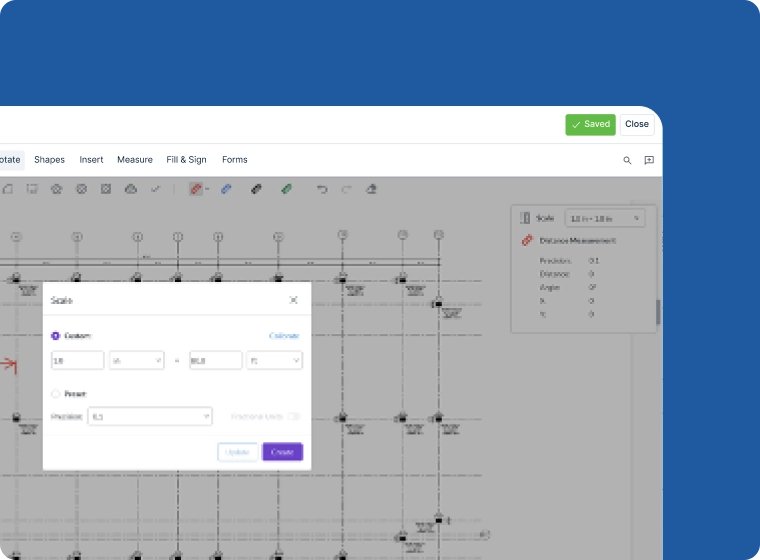 Streamline estimates via a fast, precise measurement tool. Set drawing scale, and measure distance, area, perimeters, and more with snap-to geometry.