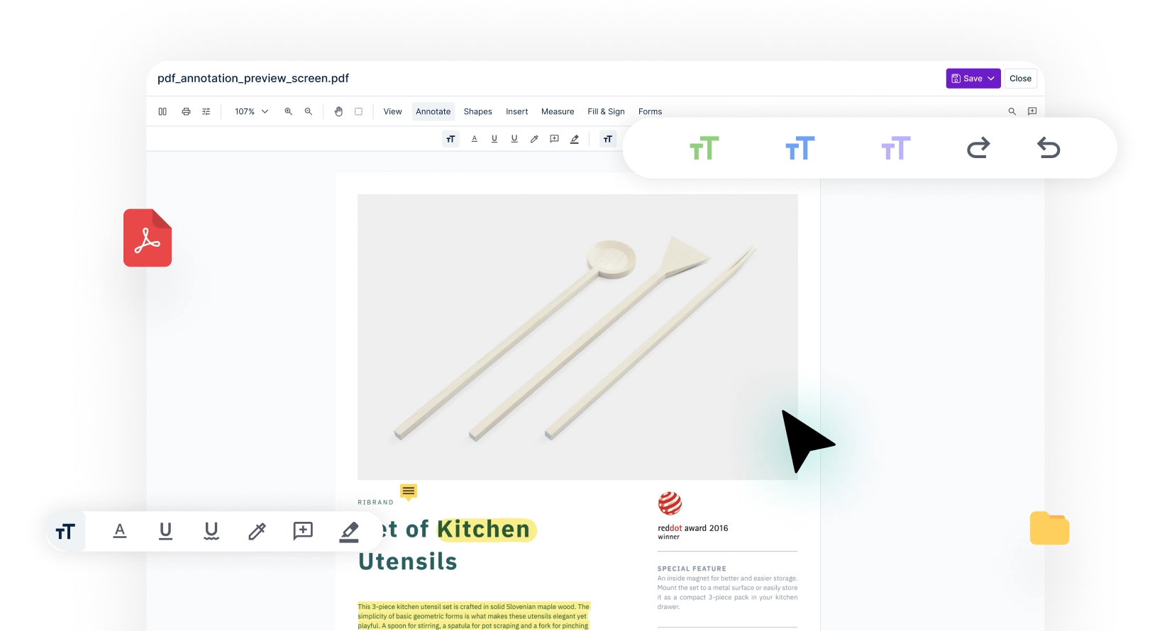 Choose from 30+ native annotation tools, edit PDF text and images, and apply or change existing styling or font sizes.